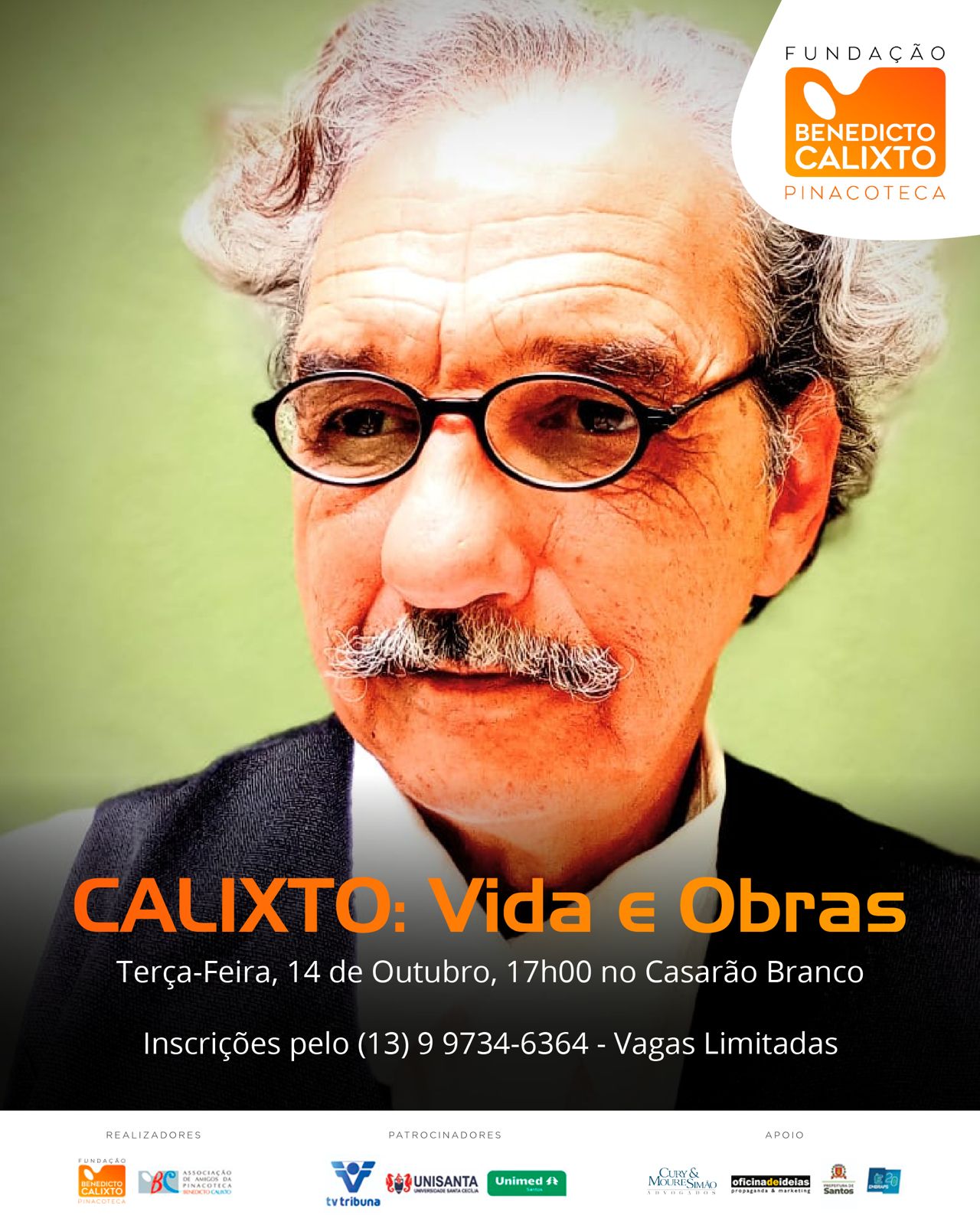 Sexta, 04 de Outubro, 20h, Salão Nobre da Pinacoteca Benedicto Calixto