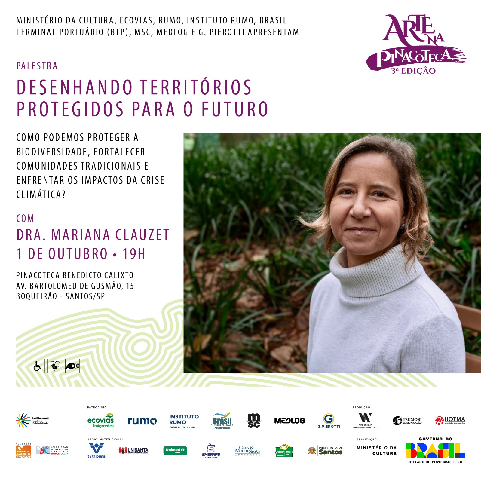 O 1º Prêmio de Fotografia Artística Benedicto Calixto é destinado a fotógrafos profissionais e amadores maiores de 18 anos, com o tema "Belezas Naturais da Baixada Santista". As inscrições, gratuitas, vão de 24/10 a 17/11, e cada participante pode enviar até 5 fotos individuais. O primeiro colocado receberá R$ 1.500,00, o segundo R$ 1.000,00 e o terceiro R$ 500,00. A premiação ocorrerá em 11/12 na Pinacoteca Benedicto Calixto, Santos.