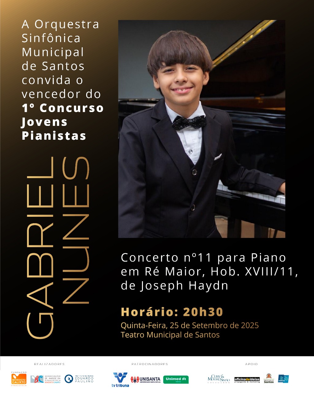 Com patrocínio do Instituto de Olhos Eduardo Paulino e apoio da TV Tribuna, jovens pianistas dão início a sua jornada de apresentações musicais buscando chegar na grande final. Um time especial de jurados irá selecionai os dois candidatos que seguem para as próximas etapas, que se encerrará na Grande Final do dia 28 de Julho.