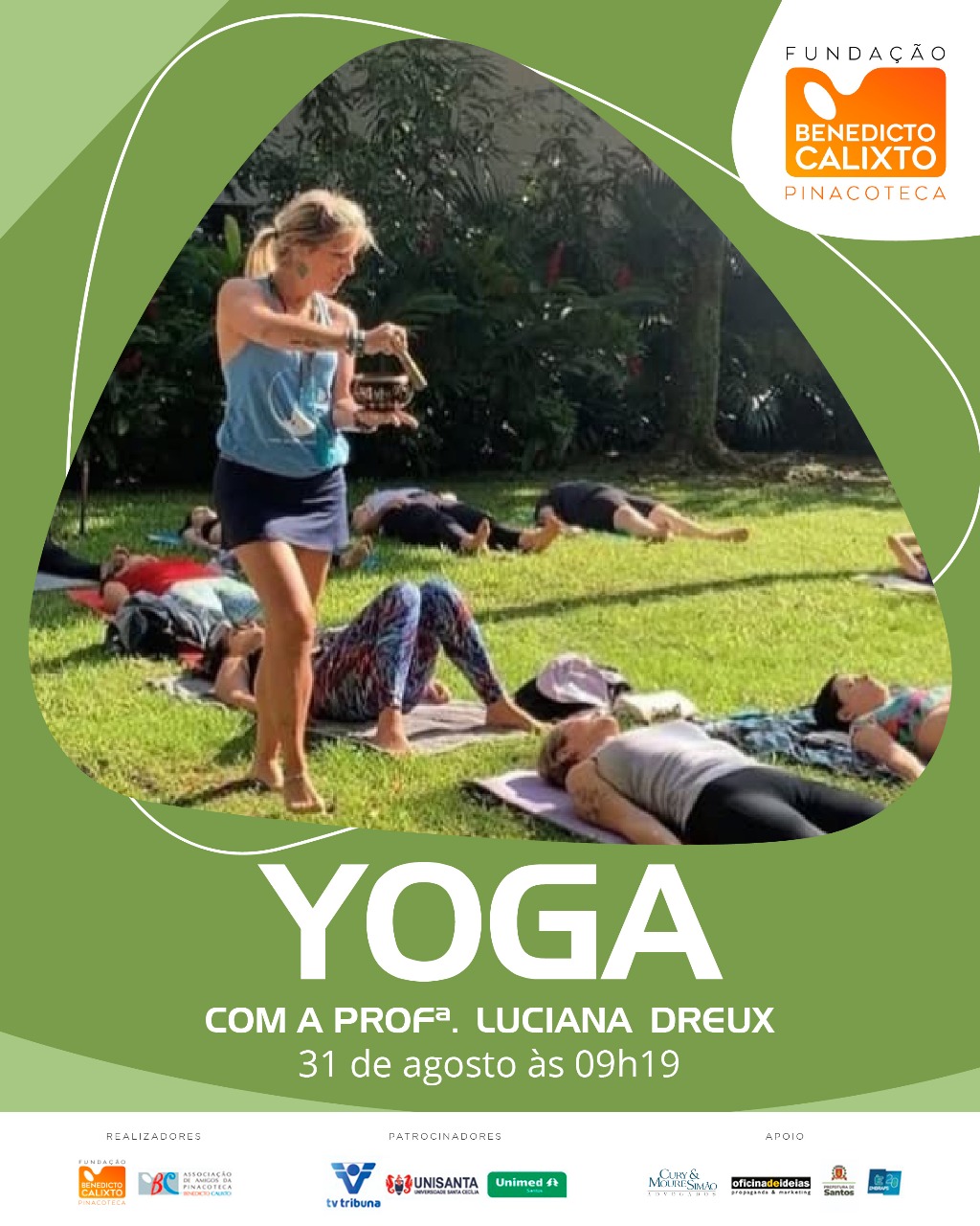 Yoga nos Jardins com a professora Luciana Dreux, traga sua toalha, sua água e venha relaxar com os exercícios.