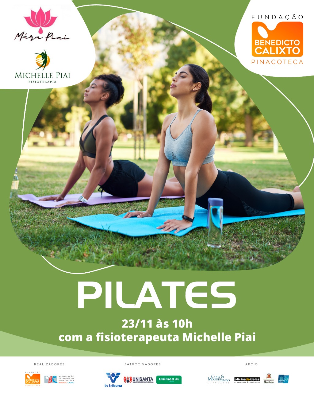 Pilates e Aromaterapia com Michelle Piai - Aula gratuita, aberta ao público, nos jardins da Pinacoteca. Traga seu tapetinho e sua água. Se chover será cancelado.